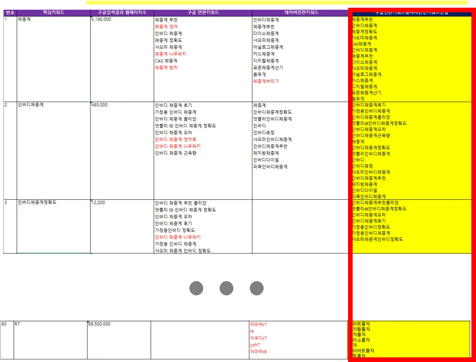 앞서 추출한 핵심연관 키워드로 경쟁사와 비교 하여 구글/네이버의 키워드 점유률과 현재 Position을 알아낼 수 있습니다.