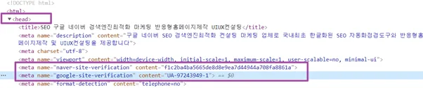 위의 이미지는 네이버 구글의 사이트 Verification이 함께 적용된 이미지입니다.