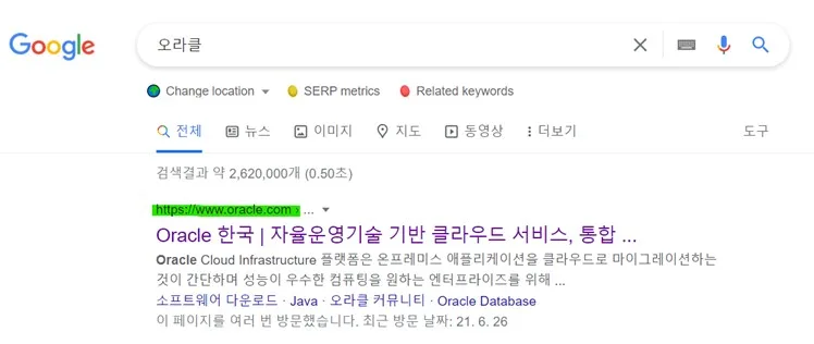 예를 들어, 구글에서 오라클을 검색할 경우 검색엔진은 이미 아래와 같이 https://www.oracle.com이라고 대표 도메인을 인정하고 있습니다.