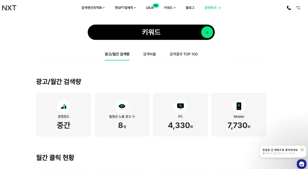 키워드의 검색량, 클릭 가능성, 경쟁 수준 등을 분석하여 SEO 전략 수립에 도움을 줍니다. 무료로 제한된 수의 검색이 가능합니다. - 워드키(wordkey)