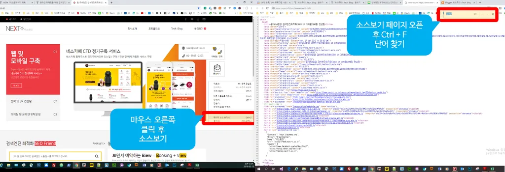 웹페이지에서 마우스의 오른쪽을 클릭 후 ‘소스보기’를 하여 태그를 사용하였는지 확인해보세요!